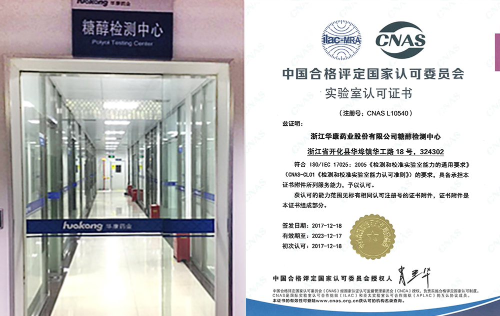 华康检测中心拥有气相色谱仪、液相色谱仪、原子吸收光谱仪、红外吸收光谱仪、紫外可见分光光度计、卡尔费休水分测定仪、旋光仪、熔点仪等先进仪器设备,参与木糖醇、麦芽糖醇等10多项国家标准的起草工作。